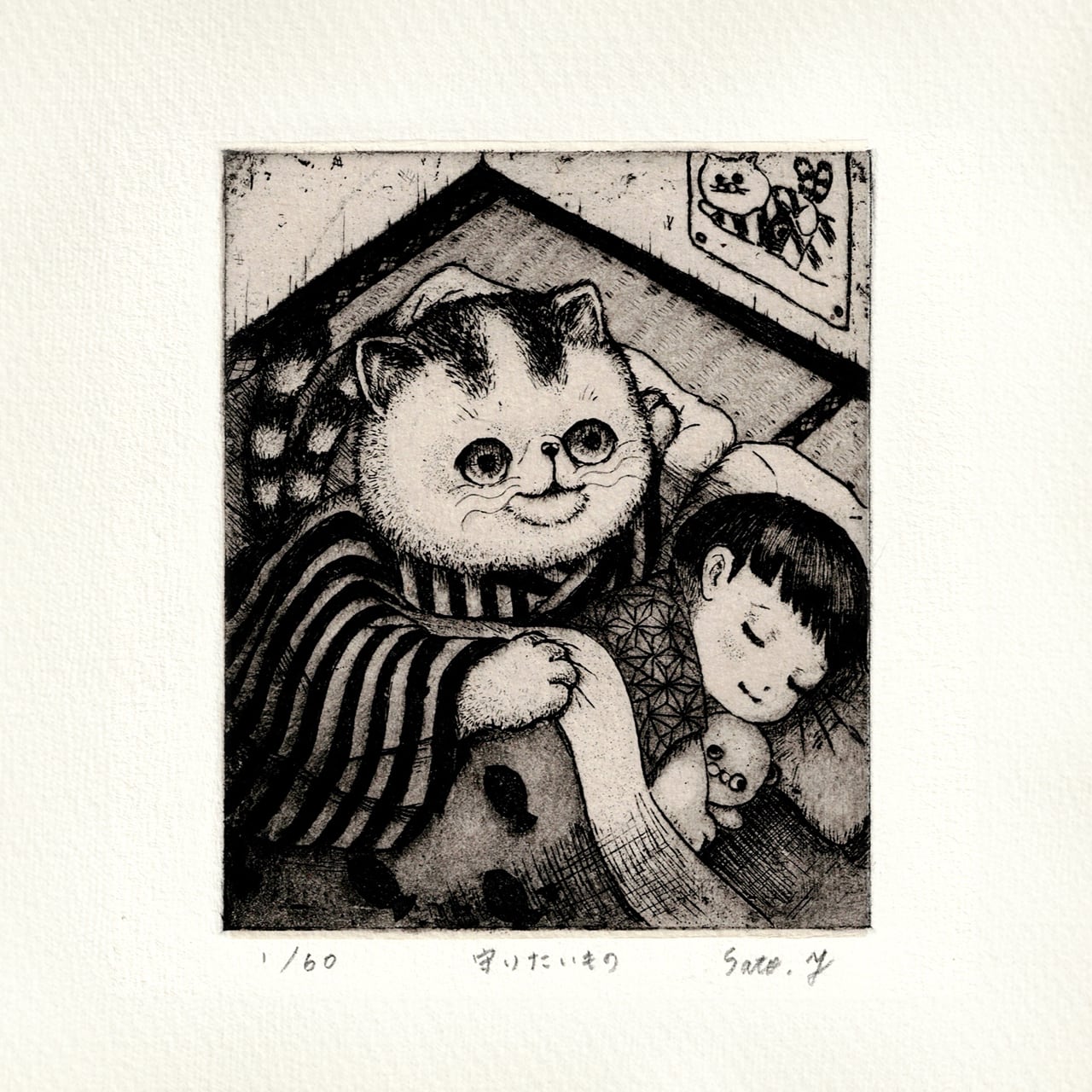 心の奥にある大切な存在を、静かな銅版画の世界で感じ取っていただけることを願っています。お部屋に飾ることで、ほっこりとした気持ちになってもらえたら嬉しいです。